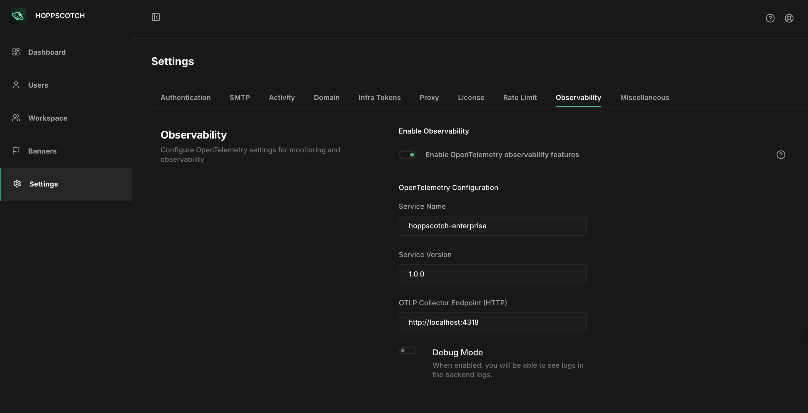 From the API Lab Admin Dashboard, configure the OpenTelemetry Collector endpoint (HTTP).